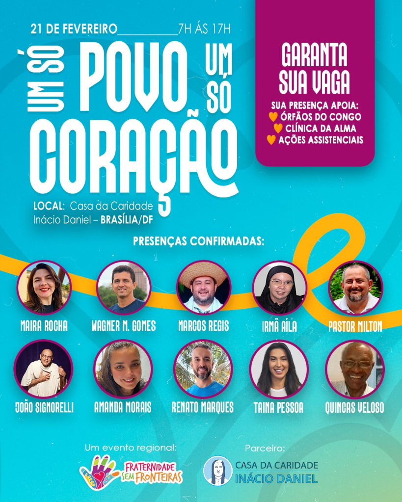 A Fraternidade Sem Fronteiras (FSF) -Organização humanitária e não-governamental com atuação em nove países – escolheu a capital federal para sediar o primeiro Encontro Regional de 2026. O evento será no próximo dia 21 de fevereiro (sábado), das 7h às 17h, na Casa da Caridade Inácio Daniel, em Águas Claras, sob organização de voluntários brasilienses.