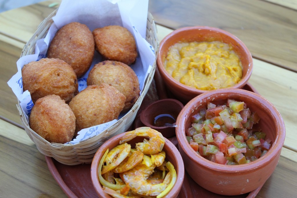 Entre os carros chefes da casa estão o acarajé R$ 44,00 (Porção com 6 mini bolinhos acompanhados de vatapá, vinagrete e camarão seco), que também tem a porção vegana, em que o camarão seco é substituído pela moqueca de maturi (castanha de caju verde que é uma iguaria), as moquecas de peixe e maturi, R$70,00 (individual) e R$130.00 (duas pessoas), que vem acompanhada de arroz, farofa de dendê e feijão de leite. Tem ainda a moqueca de banana da terra, um dos pratos mais pedidos, R$60,00 (individual) R$115,00 (2 pessoas), com os mesmos acompanhamentos das outras moquecas.