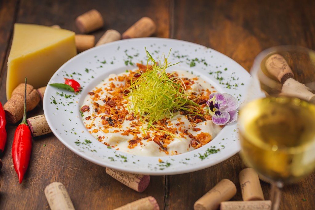 Para começar, de entrada, o Wine Experience propõe a Brienne, trouxinhas na massa filo com queijo brie, mel e pimenta dedo de moça, acompanhada do rótulo Casa Valduga Arte Brut. O primeiro prato principal é o Gnocchi da Nona, com creme de queijo, bacon e crispy de alho-poró combinado com o rótulo RAR Miolo Gewurztraminer. Para o segundo prato principal, será servido o Risoto ao pesto de camarões flambados em redução de cassis, harmonizado com o Yali Ventisquero Reserva Pinot Noir. Para o terceiro prato principal, o Filé Poivre, temperado com pimenta verde, servido como Rendez-Vous Merlot Cabernet Sauvignon. Ao final da degustação, a sobremesa fica por conta da Cocada Boa, acompanhada do Yali Ventisquero Moscato do Limari.