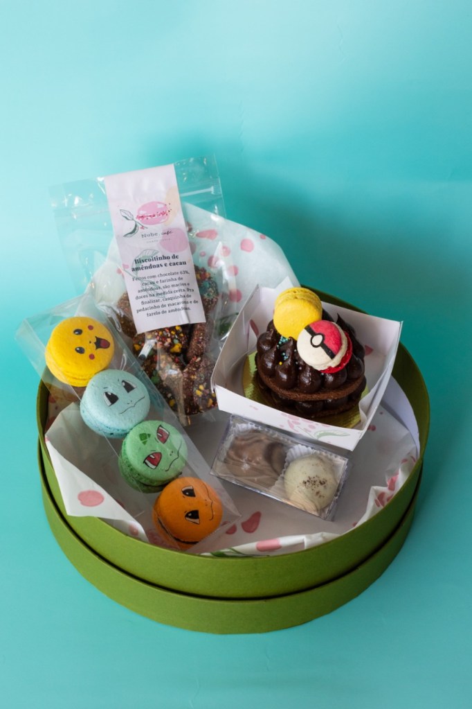 Já os kits, com quatro macarons, tortinha sucree, duas trufas e biscoitinhos de amêndoas e cacau, sai a R$ 110. Eles são personalizados com ilustrações de princesas, Pokémon, elementos do espaço ou do fundo do mar. Tudo de acordo com a escolha do cliente.