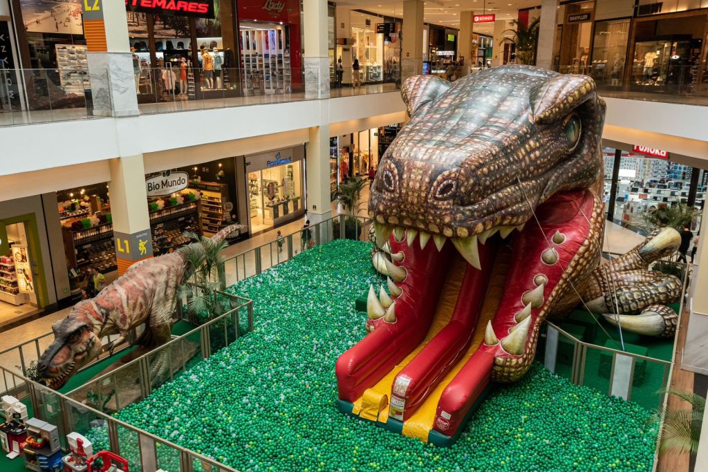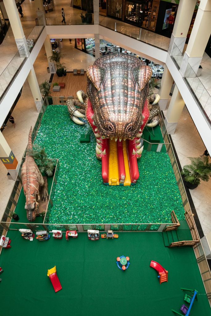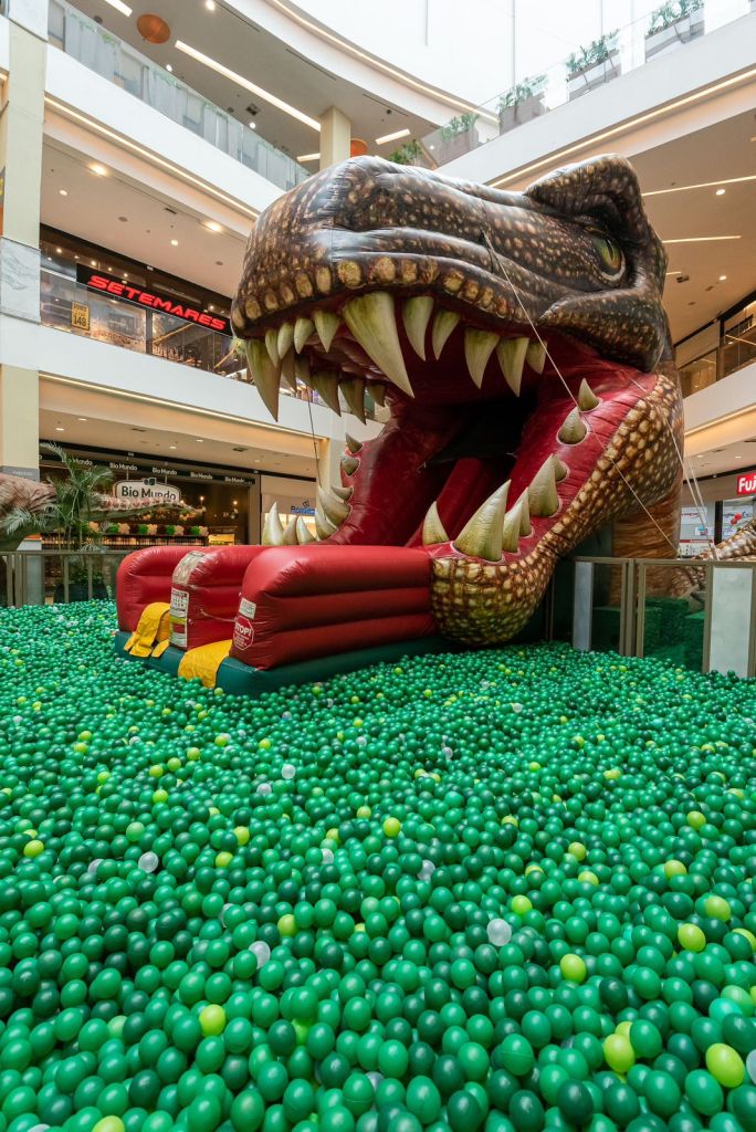 Numa área total de 307m², os pequenos visitantes poderão conferir um T-Rex Mecatrônico hiper-realista, além da piscina de bolinhas e os infláveis Raptor Slide e Dino Land, proporcionando uma experiência divertida para toda a família. Os mais novos também podem aproveitar o evento na Área Baby, que possui espaço com balanços, cozinhas infantis, escorregador, gira gira, entre outros brinquedos.