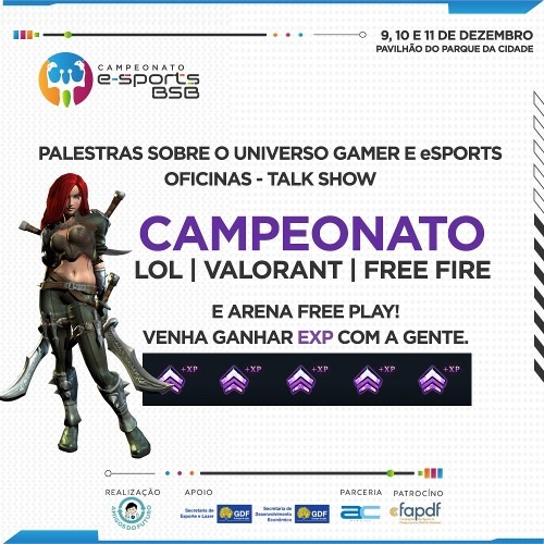 Brasília recebe campeonato gratuito de e-Sports com Palestras, Talk Show com grandes nomes da cena dos e-Games: Free Fire, Valorant e League of Legends e muito mais.
