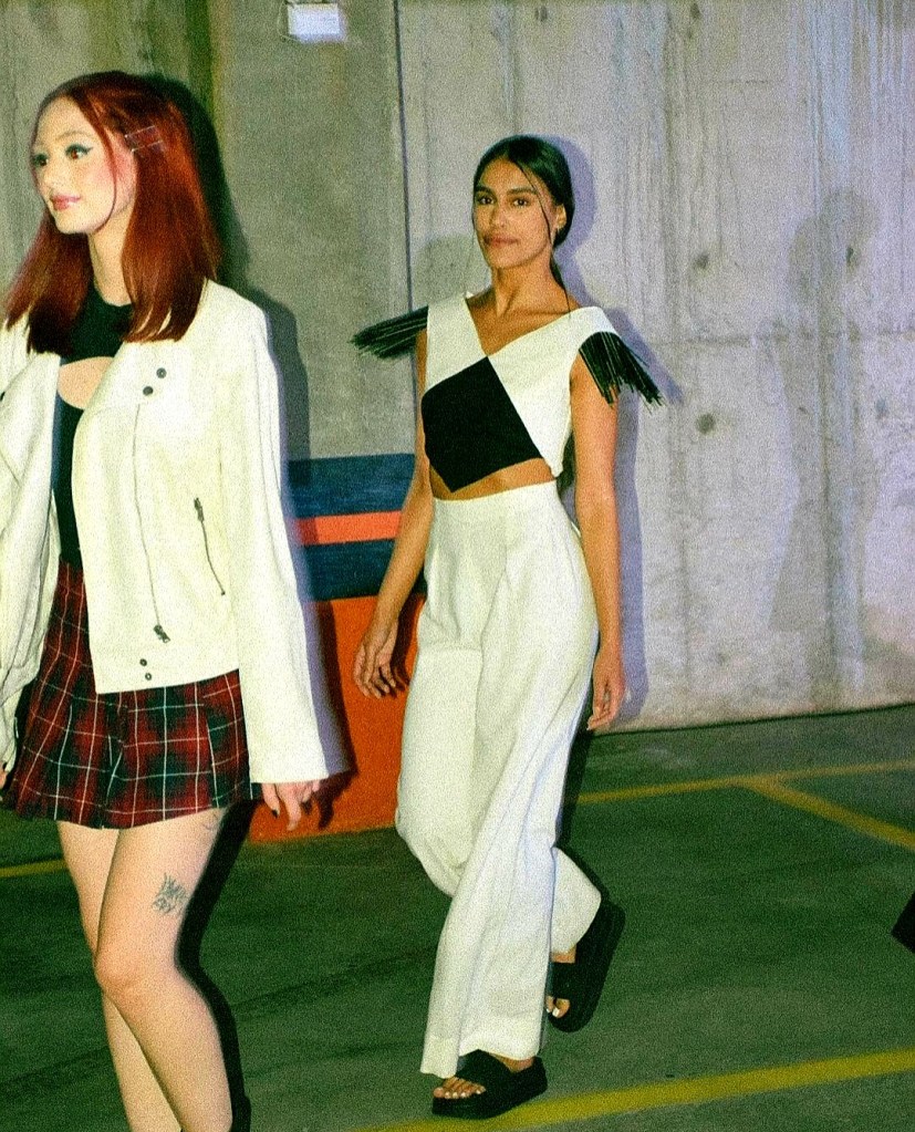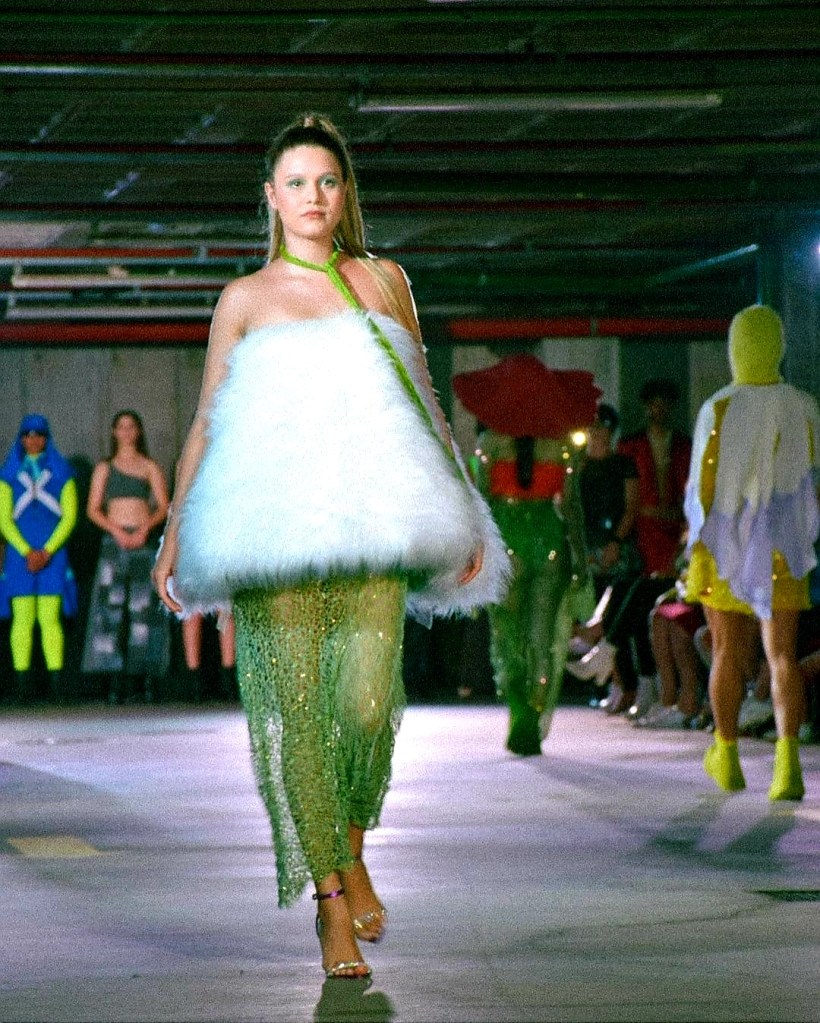 Todas as peças exploram materiais e técnicas diferentes, em que, uma vez vestidas, elas se tornam roupas e ao mesmo tempo obras de arte”, disse Mel ao destacar a importância de aliar a teoria em prática na graduação. “É o momento de testar e descobrir uma nova experiência. Levar o nosso conhecimento para um desfile tão especial foi uma oportunidade incrível”, completou a aluna ao lado dos colegas.