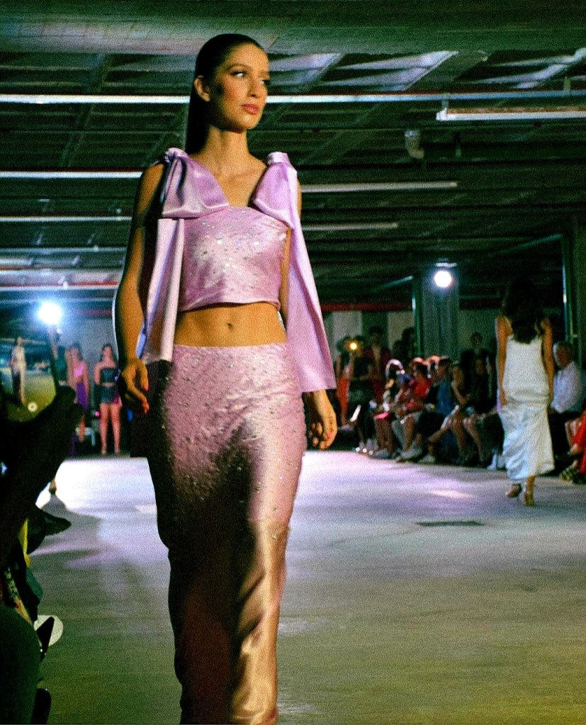 Entre as apresentações, a formanda Júlia Bastos levou para a passarela sua coleção Ireni, inspirada em sua avó, artista e pintora. Foram quatro looks com o tema brasilidades e flores rosas, marca registrada da artista. “Eu queria um tema clássico que nunca saísse de moda e estou muito feliz com o resultado. A coleção é sobre as rosas que minha avó pintava e lembra muito a minha infância”, disse.
