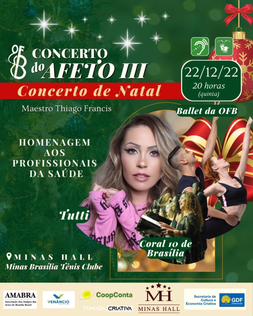 No próximo dia 22 (quinta-feira), às 20 horas, a Orquestra Filarmônica de Brasília – OFB realiza a 3ª Edição do Projeto Concerto do Afeto, dedicado a homenagear os profissionais envolvidos com a Saúde do Distrito Federal.