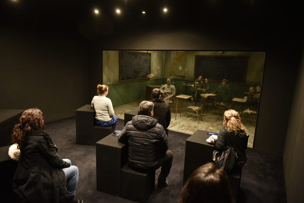 Outra obra desconcertante e grande destaque entre as instalações de Erlich presente na exposição de Brasília é “Classroom”. Nela, quando o visitante adentra na sala, sua imagem é refletida num vidro, como se ele fizesse parte de uma cena diferente. Quem adentra a sala fica parecido com uma espécie de fantasma, como se estivesse numa sala de aula abandonada – as memórias de infância se projetam para um cenário de crise e de abandono.