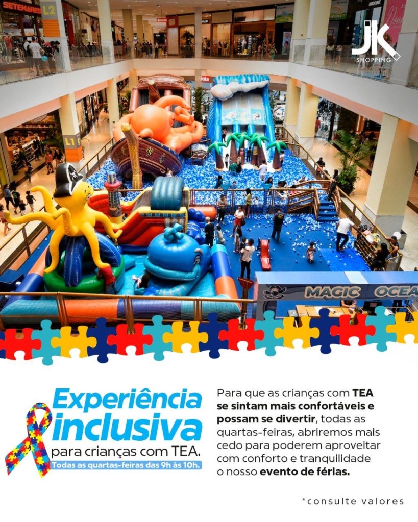 Crianças com Transtorno do Espectro Autista (TEA) terão diversão garantida na atração Magic Ocean, do JK Shopping, todas as quartas-feiras, até o dia 22 de fevereiro.
