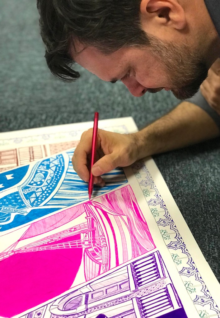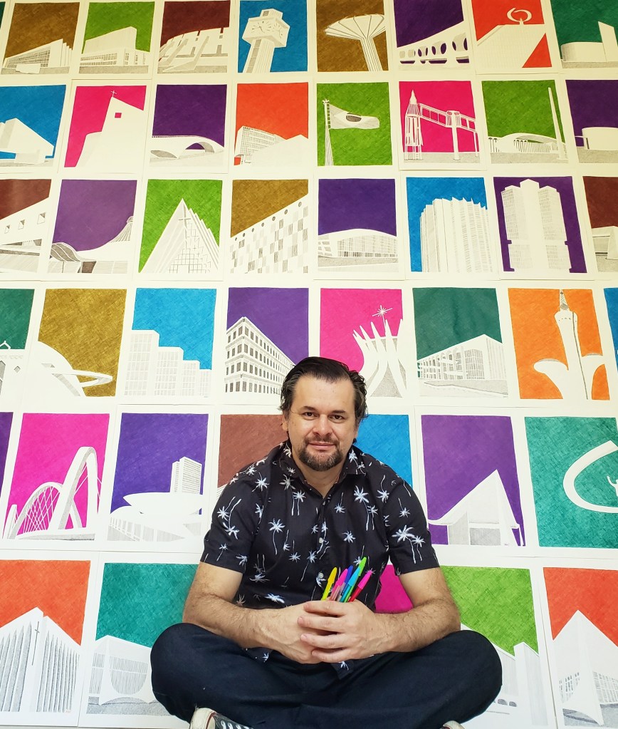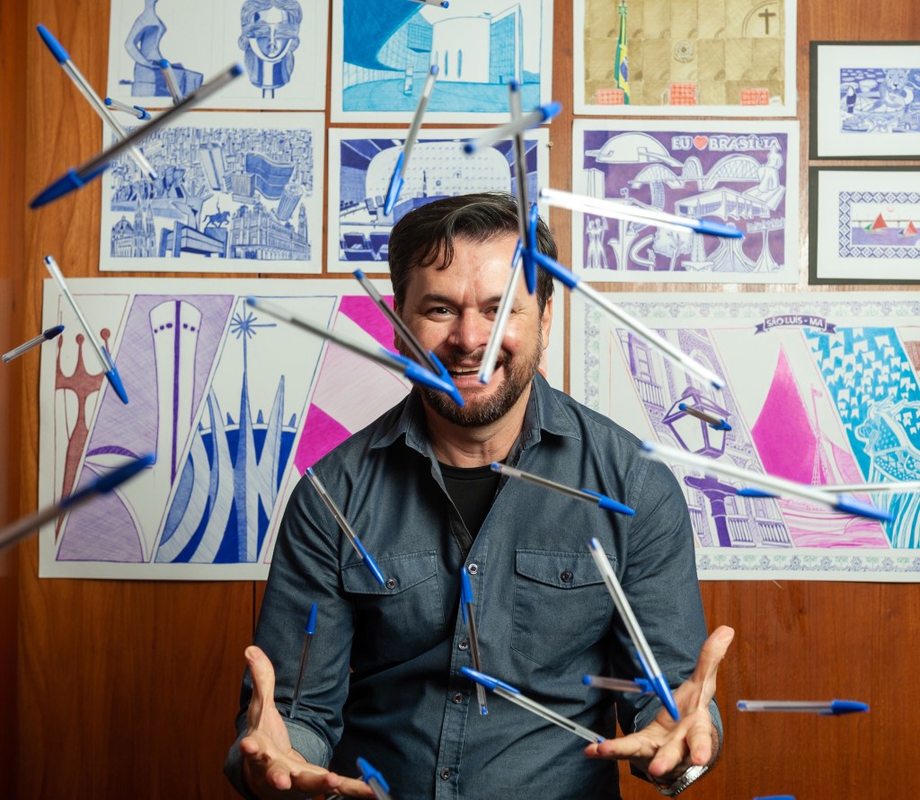 Com o apoio de canetas esferográficas nas cores azul, vermelho, verde, rosa, entre outras, o artista Jailson Belfort recria cenários de Brasília e detalha monumentos e espaços públicos com um olhar que brinca com tonalidades, linhas e, principalmente, com a criatividade. Nascido no Maranhão e radicado em Brasília desde 1999, o artista usa suas criações para interligar memórias, vivências e contrastes de ambas as realidades.