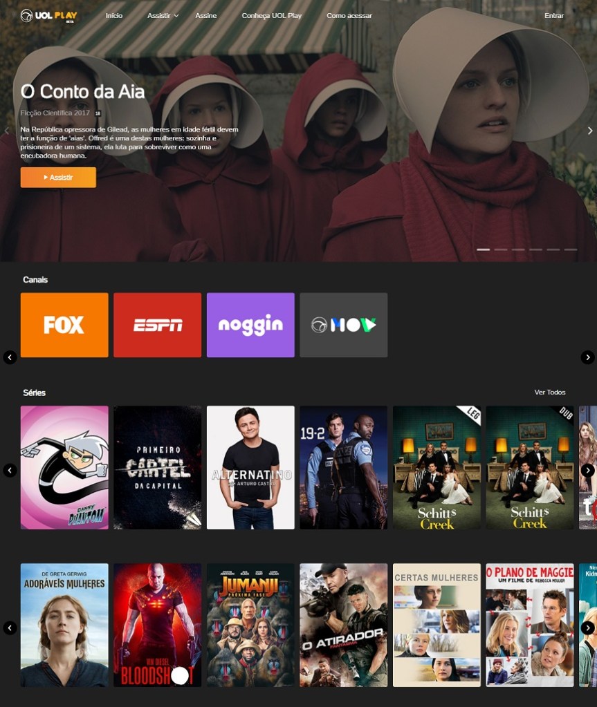Com uma solução robusta, o UOL Play combina a variedade de canais da TV por assinatura com toda a facilidade e customização da experiência do streaming. A plataforma conta com um acervo de produções proprietárias e exclusivas do UOL, filmes e séries, programação infantil e esportiva, além do conteúdo de canais lineares como Warner Channel, Sony Channel, History, AXN, BandNews, BandSports, MTV, entre outros. As opções de planos são: Cinema (R$69,90) e Light (R$24,90), além da promoção do plano Cinema com 1 mês grátis de HBO Max.