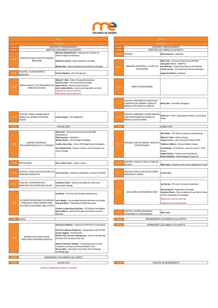 Palestrantes confirmadas: https://mulheresdaenergia.com.br/palestrantes/