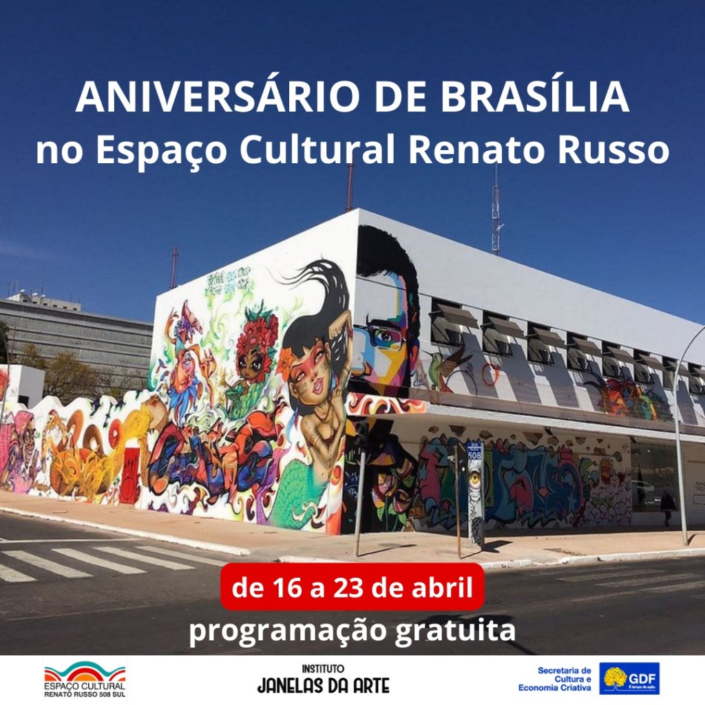A partir deste domingo (16), o Espaço Cultural Renato Russo entra em festa para comemorar os 63 anos de Brasília com uma ampla programação cultural que inclui shows, lançamentos de filme, Homenagem à TT Catalão, Concerto Sinfônico, atividades infantis, feira cultural, exposições e Baile de aniversário.