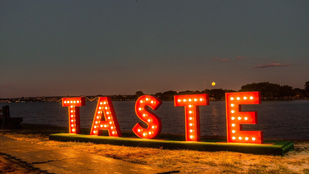 Com mais de 30 expositores, 15 estabelecimentos (13 restaurantes e dois bares), o Taste Brasília Festival vai ostentar um cardápio de grandes chefs e restaurantes renomados, atividades de conhecimento e experiência gastronômica, produtos exclusivos e boa música. Tudo isso num só lugar com vista para o Lago Paranoá, estrutura de excelência e programação para toda a família.