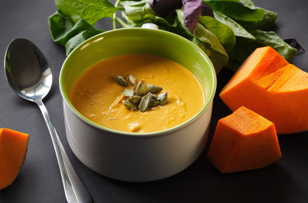 Sopa de abóbora com espinafre