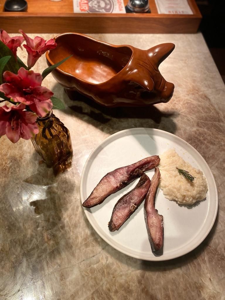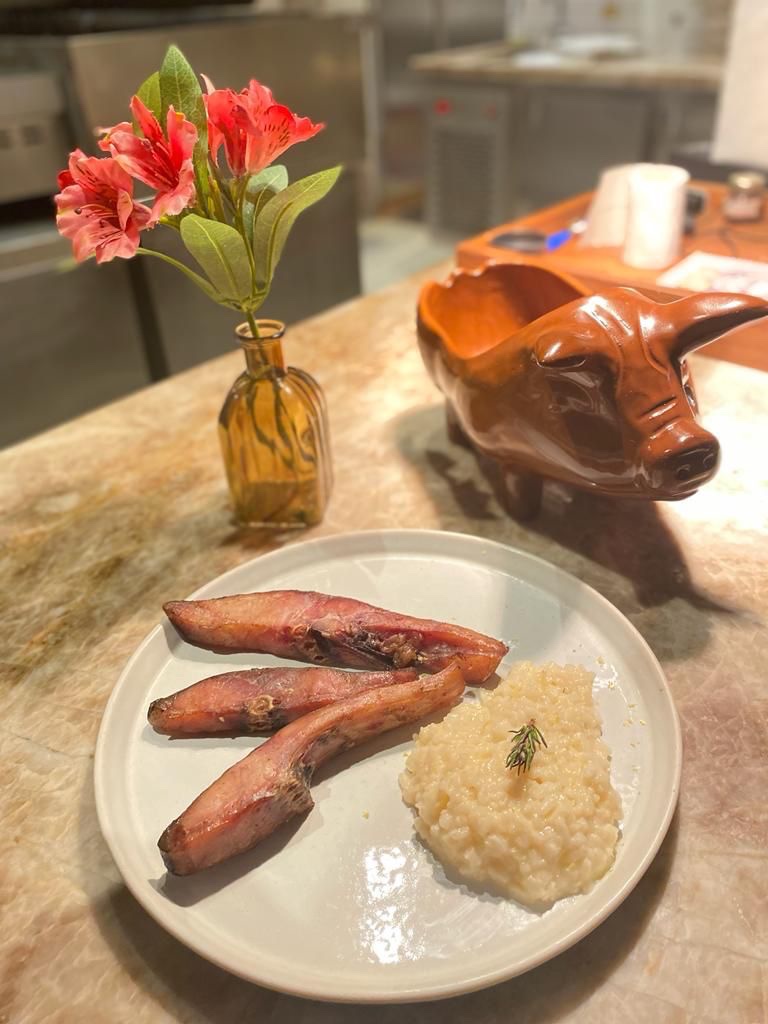 “Somos conhecidos pela carne suína mas para a ocasião preparamos esse prato que traz frescor, leveza e também uma pitada do restaurante que é a defumação “