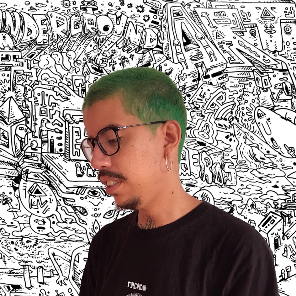 “O doodle é a junção de desenhos e linhas, realizados de forma espontânea, às vezes ao acaso. A ideia é soltar o traço, unindo várias imagens. A interação do grupo é exatamente encaixar um desenho no outro, formando uma obra visual construída a diversas mãos. Para mim, quem sabe segurar uma caneta, sabe desenhar”, explica o artista.