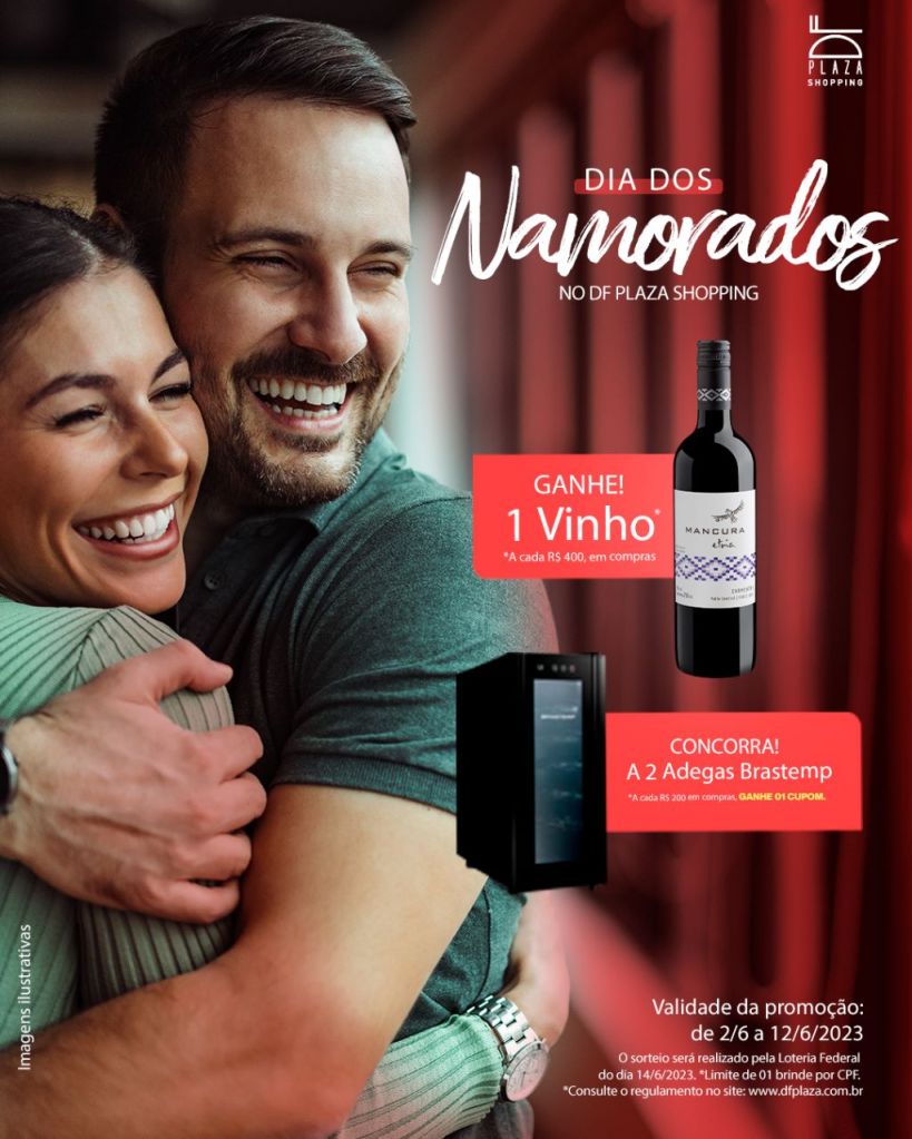 Ocasiões especiais merecem ser comemoradas e o DF Plaza Shopping celebra o Dia dos Namorados com uma campanha especial. Os clientes podem concorrer ao sorteio de duas adegas, além de poder levar para casa um rótulo de vinho à sua escolha. E no dia dos pombinhos tem show de graça.