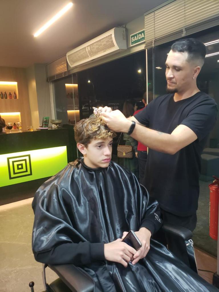 A barbearia é moderna, sem vintage e sem retrô, conceito criado com ajuda da Inteligência Artificial. A arquiteta Rachel Fechina foi a responsável pelo projeto arquitetônico, deixando um ambiente clean e interativo.