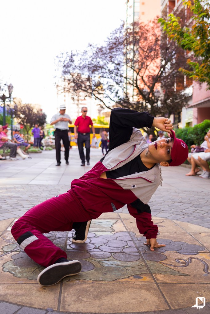 Diz o velho e conhecido lema que “o artista tem de ir aonde o povo está”. E Júlia segue a máxima com muita naturalidade, pois a rua é um espaço onde essa artista plural se sente muito à vontade. Não à toa, uma vez que tanto as artes circenses como o breaking, afinal, tanto seu histórico de performance e atleta tem raízes das calçadas, praças e outro espaços públicos. “A rua pra mim é o espaço mais desafiador e mais confortável do mundo, sei o quanto é difícil e perigoso ser um corpo feminino nestes locais, mas tenho um afeto pessoal com esse espaço que me apresentou a brincadeira do circo, da capoeira, do skate, do breaking. É na rua, também, que tenho a oportunidade de levar a minha arte para pessoas de diferentes idades, classes sociais”, garante a artista.