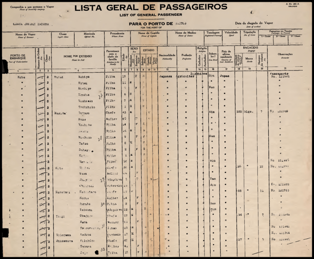 A história da família está ligada a mais um navio, que inclui também o Nissyo Maru que circulou por águas internacionais entre 1939 e 1942. A presença do adesivo desse navio nos baús da família indica duas possibilidades: a família despachou parte de sua bagagem separadamente após ter se instalado no Brasil ou a família visitou sua terra natal após ter se instalado no Brasil. Nissyo Maru foi afundado em março 1942 pelo submarino americano USS Gudgeon (SS-211), presume-se que a essa altura o navio era utilizado para transporte de prisioneiros de guerra.