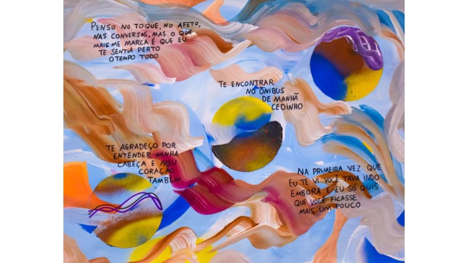 Nesta edição, a mostra ITINERANTE EM CASAapresenta o trabalho de quatro artistas visuais de origens diversas que moram e produzem em Brasília. Alexandre Mares Guia, Chico Monteiro, Gab Dias e Taís Aragão. Por meio do desenho, da fotografia, da arte digital, da pintura e da gravura, os artistas abordam temas variados, como memórias e as relações entre espaço e tempo, a estética periférica, a religião e a tradição.