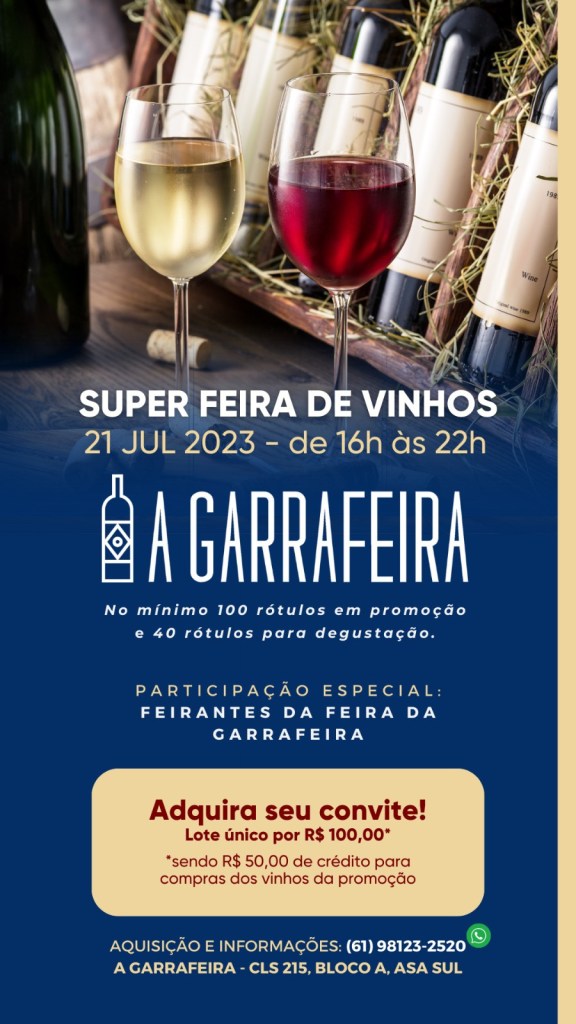 O evento terá participação especial dos feirantes tradicionais da feira, e traz como lançamentos em Brasília vinhos das vinícolas Quinta Barroca da Tília e Arte da Vinha. Do valor de