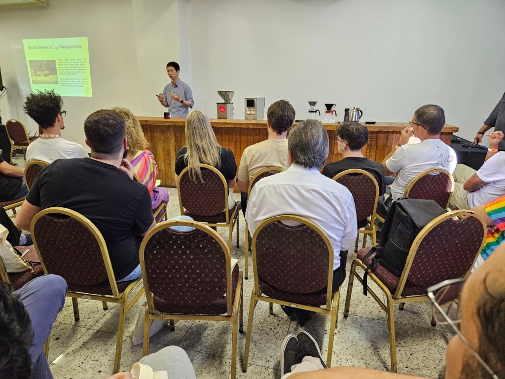 Garam Um é campeão brasileiro do Brazilian Brewers Cup Champion e 3º colocado no World Brewers Cup 2023. O barista explicou aos participantes a recente visibilidade que o Brasil tem ganhado no mercado de cafés especiais, se tornando o maior exportador não só do produto comercial, mas da categoria de especiais também. Sobre a importância da profissão de barista, Garam disse ser necessário destacar o valor dessa capacitação, pois é a pessoa que está em contato direto com o consumidor final. “O barista é o coração do mercado de cafés especiais. É o principal pilar que conecta toda a cadeia produtiva até o consumidor. Requer muito treinamento para trazer a experiência de um café diferente, entregar o diferencial na xícara do cliente”, destacou.