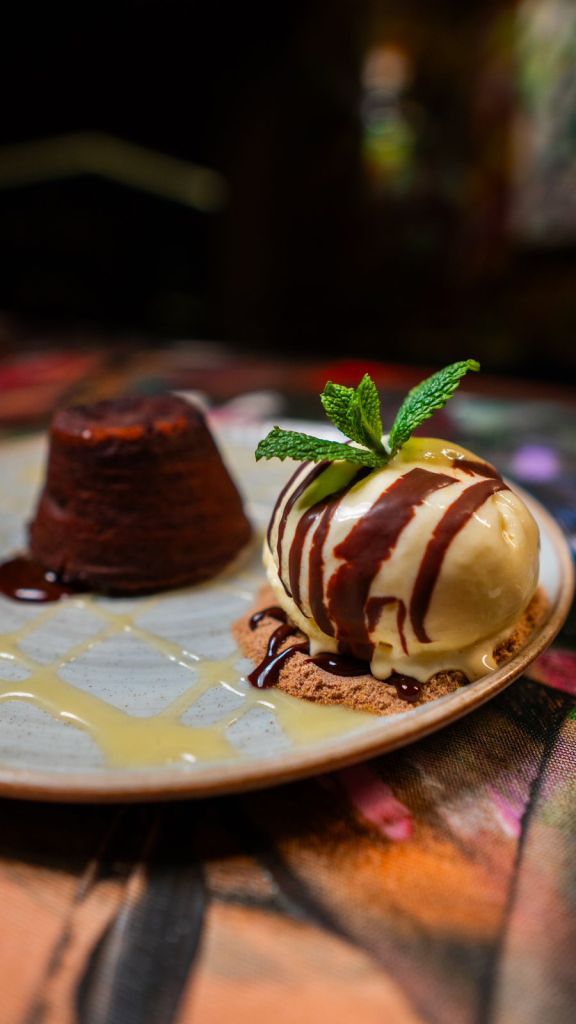 – Cortou, escorreu – petit gateau de chocolate com sorvete de creme – R$ 34;