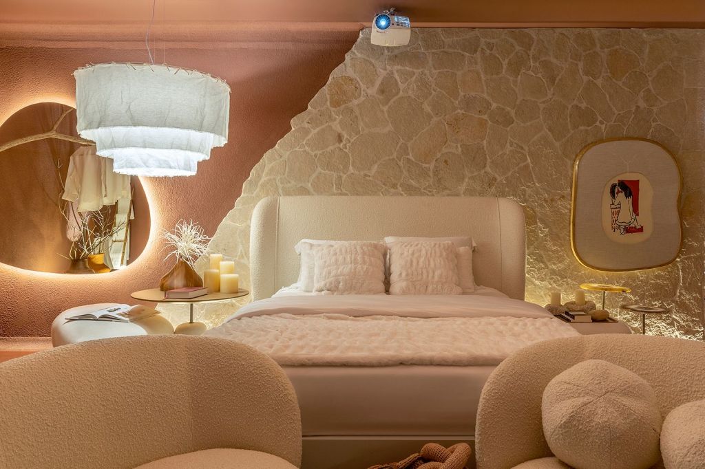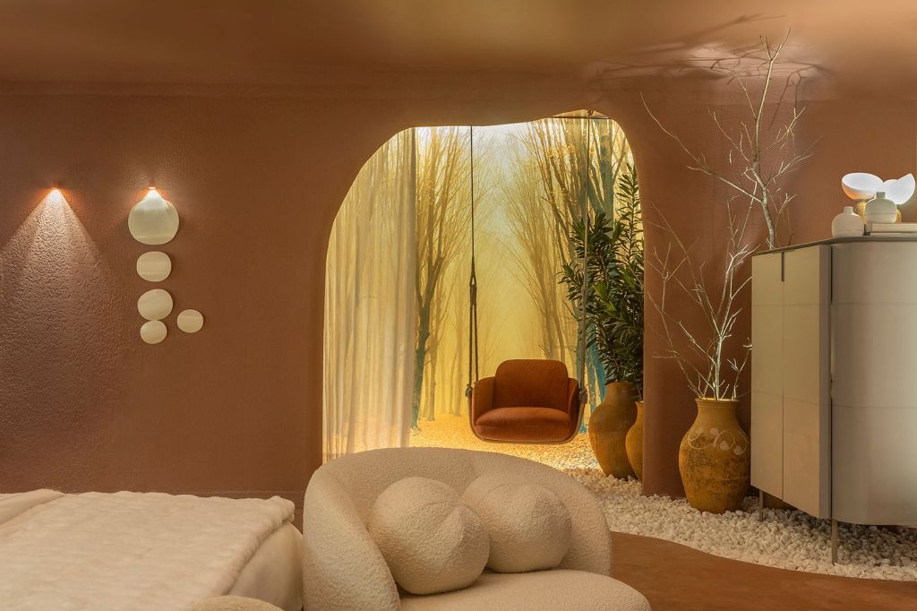 Este ano, as designers de interiores Adriana Melo e Luciana Câmara trazem diversas tendências em um ambiente exclusivo de 55m². Nomeado “Espaço Ventre”, o local — que engloba quarto, sala de banho e varanda — foi pensado como uma metáfora que remetesse ao acolhimento, autocuidado e pertencimento.