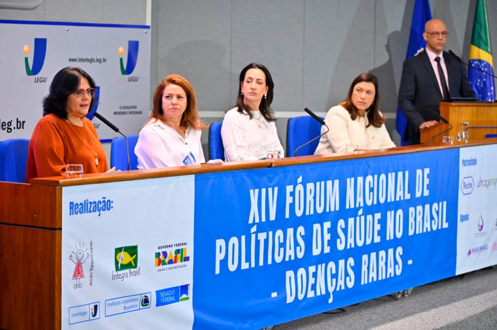 O “XIV Fórum Nacional de Políticas de Saúde no Brasil – Doenças Raras” foi sediado no auditório Senador Antônio Carlos Magalhães do Interlegis, no Senado Federal, nesta quinta-feira, 14, com objetivo de fomentar o debate acerca do panorama das Doenças Raras no Brasil. O encontro, promovido pelo Instituto Brasileiro de Ação Responsável, marcou o retorno das atividades presenciais do Programa Ação Responsável, suspensas desde 2020 devido à pandemia. Na mesa de abertura, participações marcantes de figuras atuantes no tema: a senadora Damares Alves (Republicanos-DF), as deputadas federais Maria Rosas (Republicanos-SP) e Rosângela Moro (União-SP) e o secretário executivo da Frente Parlamentar em Defesa dos Direitos e de Políticas de Atenção das Pessoas com Doenças Raras do DF, Augusto Bravo.