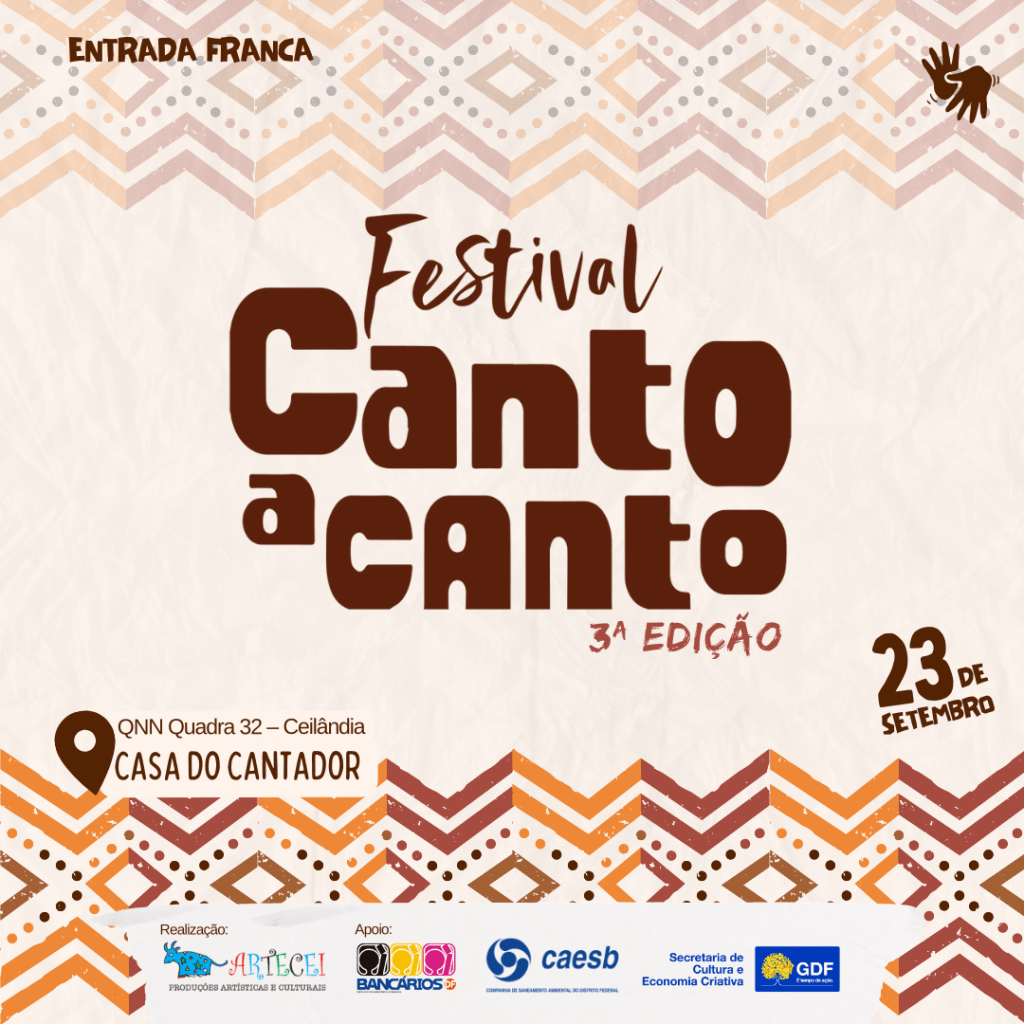 A realização deste projeto é possível graças à Artecei Produções Artísticas e Culturais, uma organização comprometida em promover a cultura e as artes no Distrito Federal. Além disso, é importante ressaltar o apoio da Secretaria de Cultura e Economia Criativa do Distrito Federal, que reconhece o valor cultural e artístico do Festival Canto a Canto e apoia sua realização.