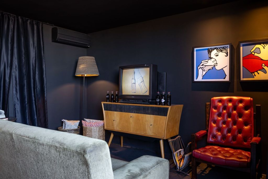 Inspirada pela rica história da Coca-Cola, Ciccarini criou uma atmosfera das décadas de 50 e 60, com um design predominantemente em tons de preto. O espaço evoca memórias do passado, com elementos que remetem às MORADAS da época, incluindo móveis de design daquele período e uma TV de tubo que exibe propagandas clássicas da Coca-Cola, oferecendo momentos de descompressão e uma viagem pelo túnel do tempo.