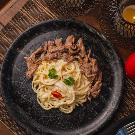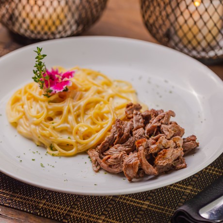 - Filetto Mignon con Spaghetti Alfredo – escalope de filé mignon, acompanhado de spaghetti ao molho Alfredo (R$65);