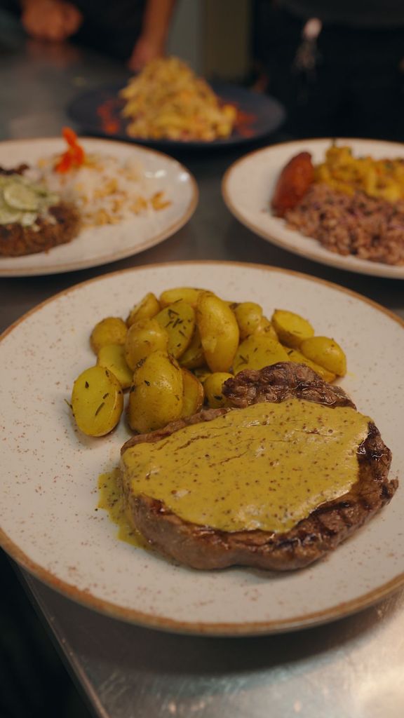– Controfilleto Tre Senapi – Contrafilé ao molho 3 mostradas, acompanhado de batatinhas assadas ao alecrim;