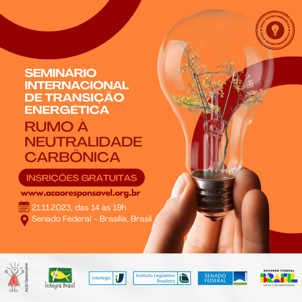 O Brasil se prepara para um evento de grande relevância no cenário mundial. O Seminário Internacional de Transição Energética – rumo à neutralidade carbônica ocorrerá em Brasília, no dia 21 de novembro, reunindo profissionais e líderes de diversos setores para debater desafios e oportunidades da transição energética sustentável e as metas de neutralidade de carbono estabelecidas pelo Acordo de Paris, assinado por quase 200 países. O evento será sediado pelo Senado Federal, no auditório do Interlegis, das 14 às 19h. As inscrições gratuitas estão abertas no site https://acaoresponsavel.org.br/index/