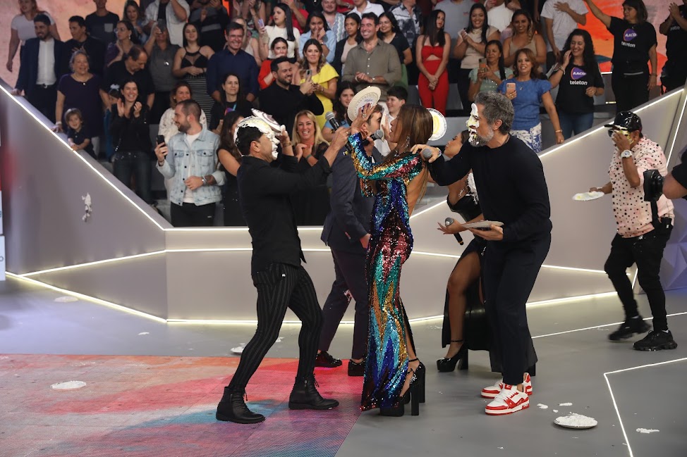 Patricia Abravanel e o padrinho digital Celso Portiolli encerraram a atração celebrando a meta conquistada após um Passa ou Repassa especial com os companheiros de palco – a embaixadora Virginia, Marcos Mion, Lexa, Zezé di Camargo, João Silva, filho do apresentador Fausto Silva, e João Liberato, filho do apresentador Gugu Liberato.