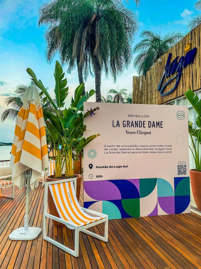 No sábado (30/12), “Sunset Party by Veuve Cliquot”. O entardecer com a vista mais linda de Brasília, o Lago Paranoá, para ser brindado com viuve Clicquot e som de DJs convidados.
