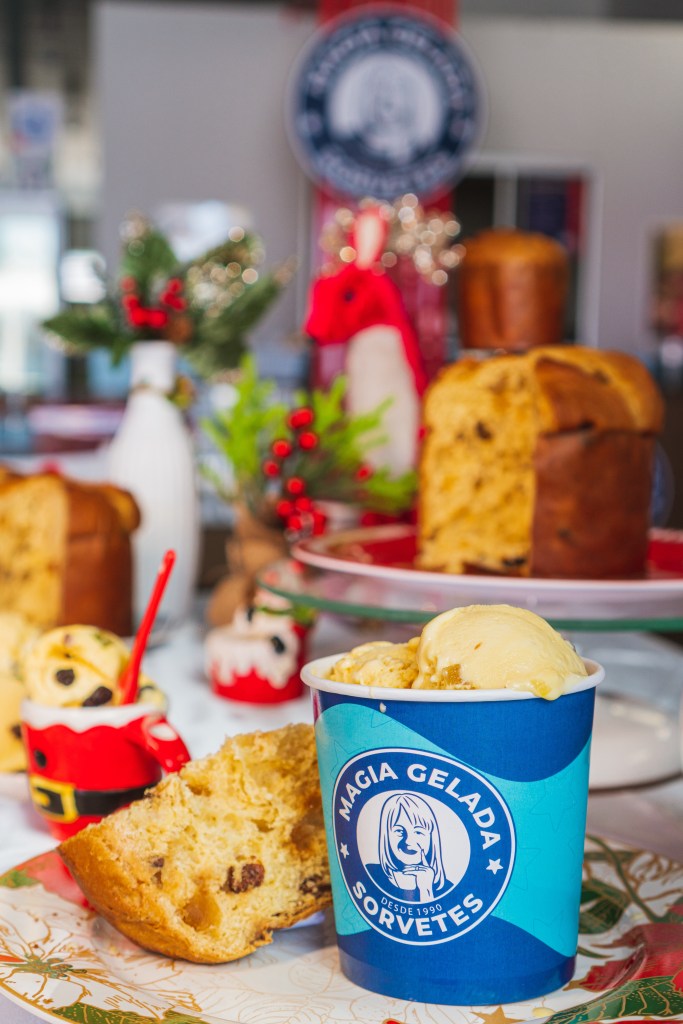 Os encontros em família, confraternização de empresas são muito propícias para aproveitar o cardápio diferenciado da Magia Gelada, que oferece tortas geladas, sorvetes temáticos e uma explosão de sabores que a marca tem para oferecer. Além dos tradicionais picolés, a magia gelada, oferece tortas de sorvetes com o gostinho natalino para marcar presença também na ceia. Para aproveitar em casa, com toda a família, as tortas geladas são uma excelente pedida. “É uma alternativa para refrescar no formato tamanho família. Basta escolher o sabor e a decoração que melhor agradar”, acrescenta Leonardo Reis, CEO da sorveteria. A linha de sorvetes natalinos está saindo do freezer com um sabor bastante característico e não poderia faltar o icônico panetone. É de dar água na boca.