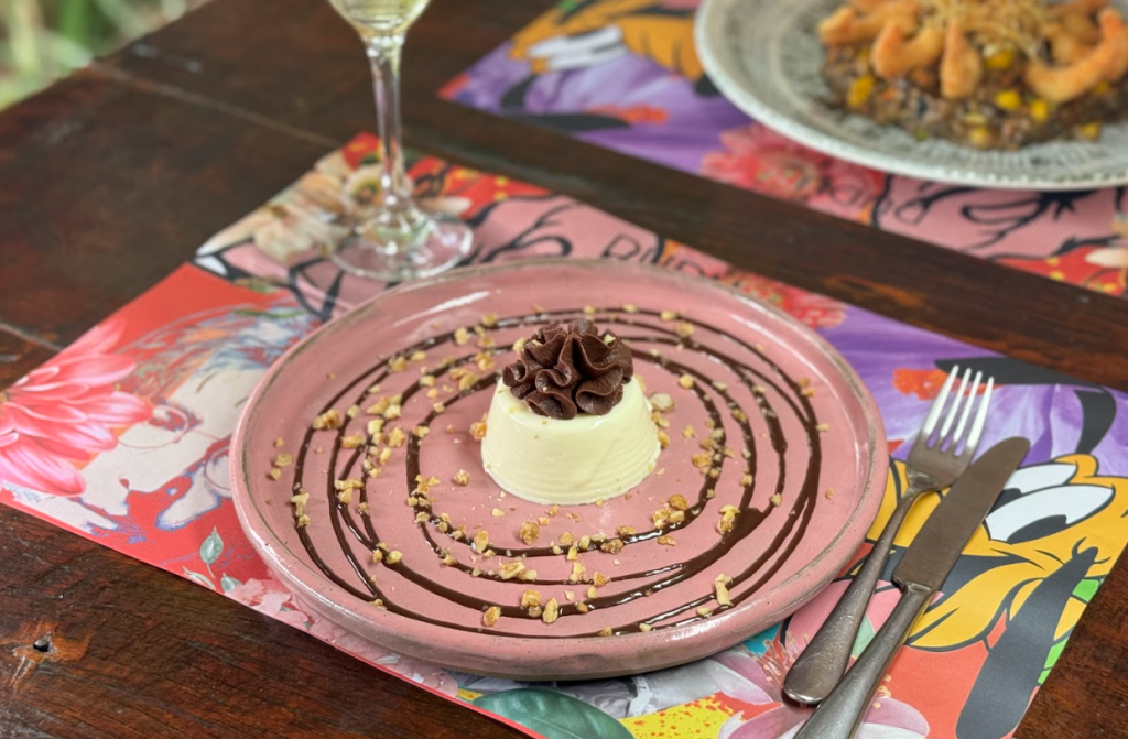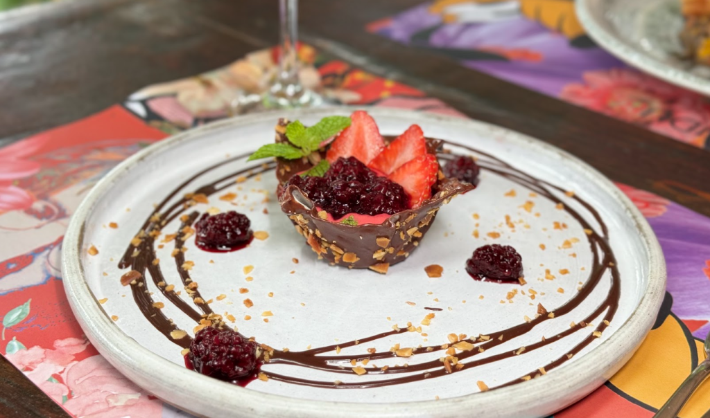 Finalizando a experiência, o paladar dos clientes será adoçado pela Cestinha lambuzada de chocolate em crosta de amêndoas, recheada de mousse de morango e finalizada com chuva de amoras ou Mousse Cake de baunilha, com mousse de chocolate e nozes caramelizadas.