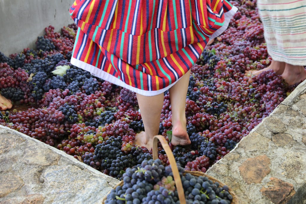 Durante o evento, os participantes têm a oportunidade de vivenciar o método “raiz” de produção de vinho, onde as uvas são esmagadas a pés descalços. Ao chegar, os visitantes recebem chapéus de palha, tesouras e cestos para percorrer os caminhos entre as videiras, colhendo os cachos de uva como os antigos colonos. Em seguida, os participantes se dirigem ao lagar, uma construção de pedras utilizada para o preparo do vinho e onde pisam nas uvas. Olivardo Saqui, proprietário da Quinta, destaca que o método de amassar a uva com os pés é menos agressivo às sementes da fruta, em comparação com o processo industrial, conferindo uma diferença significativa no produto final. “O processo da pisa permite a extração mais eficiente de suco, cor e polifenóis, resultando em uma qualidade superior da bebida”, afirma.