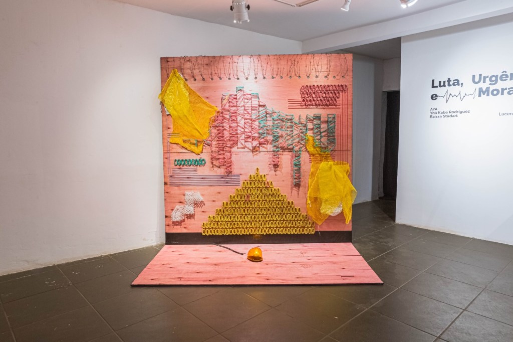 Mayara Trindade Villena, vulgo AYA, mulher negra, nasceu e se criou na Ceilândia Sul (DF) e atualmente reside em Taguatinga (DF). Graduada em Artes Visuais pela Universidade de Brasília (UnB), o vulgo e/ou nome artístico surgiu quando aderiu ao universo da pichação, o que desde levou a encontrar caminhos estéticos, visuais, sociais, políticos e éticos na produção artística, em uma busca latente por linguagens não-brancas. O trabalho caminha em diversos segmentos nos modos de fazer, entre eles fotografia, fotomontagem, colagem, gravura, pintura, e a partir do encontro das linguagens surge o que chama de “pintura-instalação”, nomeado assim, por fazer arranjos com objetos de descarte nas obras, buscando tratar sobre o que consiste à margem social em diferentes níveis.