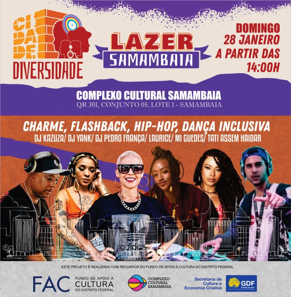 Um dos objetivos primordiais do evento é fomentar os elementos da cultura urbana de periferia como fatores de união, contribuindo para a construção de uma identidade positiva repleta de significados culturais e sentimentos de pertencimento à comunidade. O projeto conta com o apoio do FAC – Fundo de Apoio à Cultura do DF, SECEC e GDF. O projeto Cidade Diversidade, Edição Lazer Samambaia, não apenas celebra a cultura e identidade negra, mas também permeia a dança, a moda e o estilo, resgatando o espírito festivo do Complexo Cultural Samambaia.