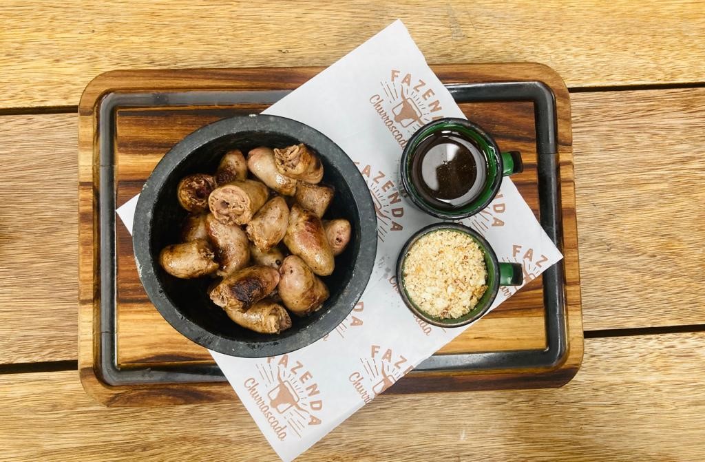 As entradas da Fazenda Churrascada Brasília, no Setor de Clubes Sul, fazem tanto sucesso quanto os cortes premium de carne. Entre as mais famosas, estão o Pão de Alho (R$ 28), e a Linguiça de Costela Angus (R$ 36), com três unidades cortadas, servidas com Farinha da Fazenda e chimichurri.
