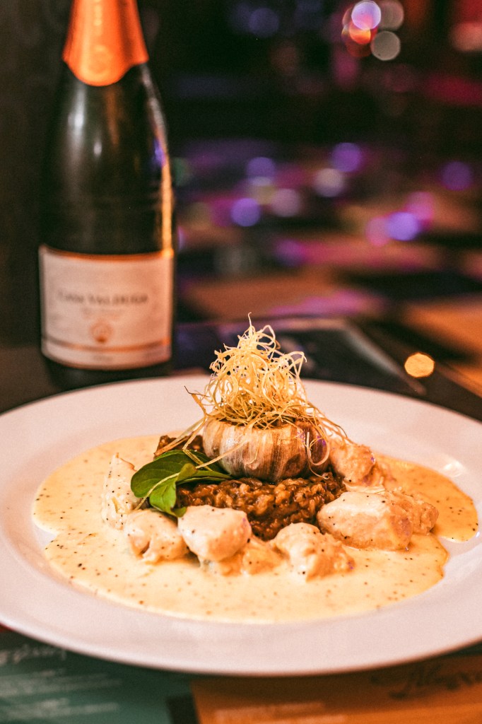 Ao pedir um dos pratos clássicos do chef Rogério Evangelista o cliente ganha de cortesia uma taça de espumante