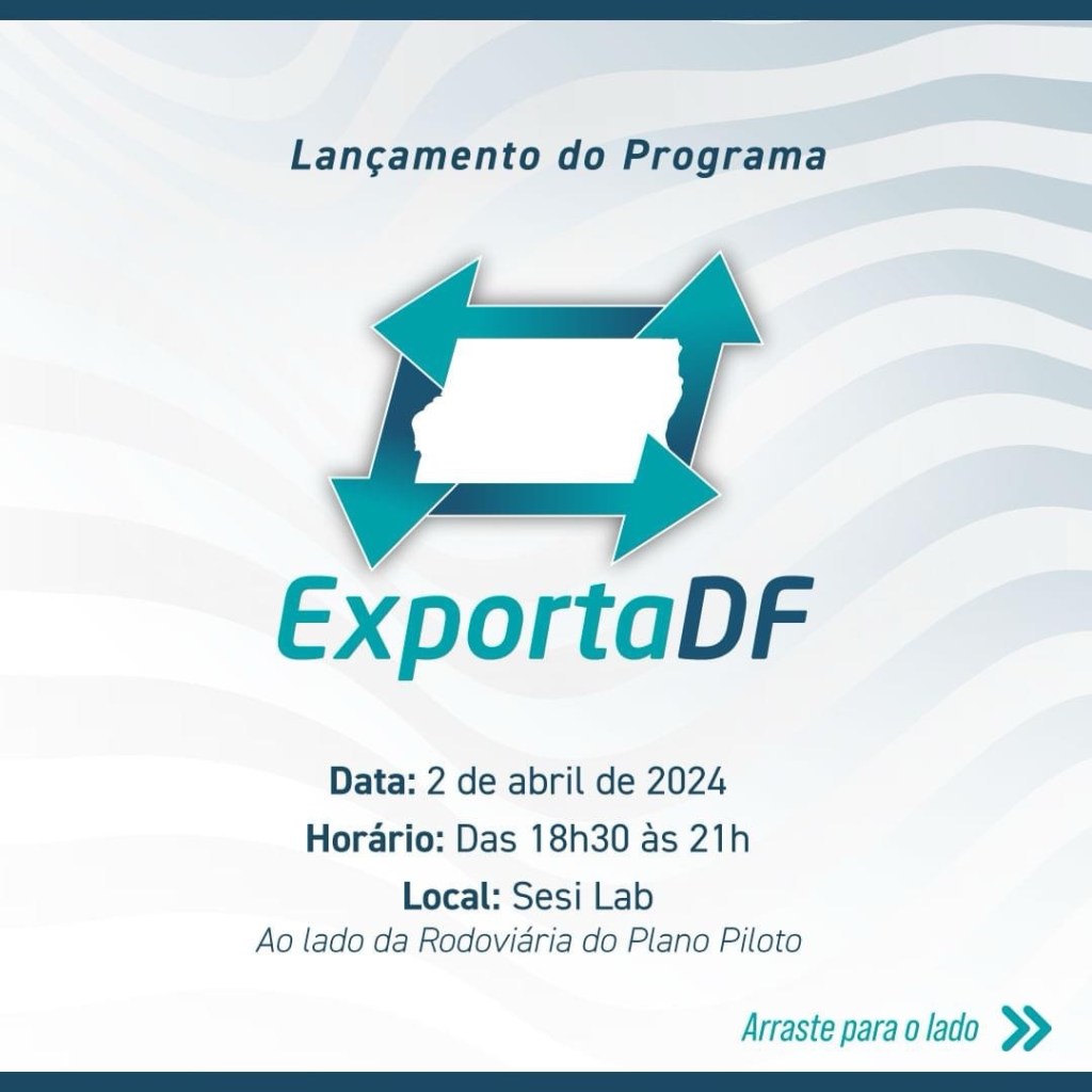 A Federação das Indústrias do Distrito Federal (Fibra), por meio do Centro Internacional de Negócios do DF (CIN-DF), lança nesta terça-feira, 2 de abril, às 18h30, no Sesi Lab, o Exporta DF. O projeto tem como principal objetivo facilitar a entrada de micro e pequenas empresas no mercado internacional.