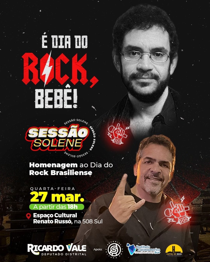 Mais de 40 anos depois da formação de grupos icônicos como Aborto Elétrico, Legião Urbana, Capital Inicial e Plebe Rude, o Distrito Federal comemora, no próximo dia 27, o Dia Oficial do Rock Brasiliense, com uma programação especial no Espaço Cultural Renato Russo. Com uma sessão solene e diversas atrações musicais, a Câmara Legislativa do Distrito Federal fará um verdadeiro reconhecimento ao gênero, que colocou a Capital Federal na cena musical nacional e mundial.