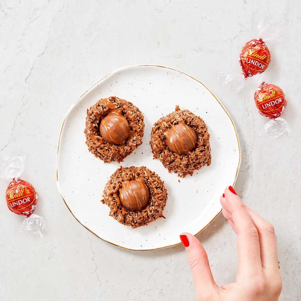 Dê uma deliciosa atualização nos macaroons de coco, transformando-os em irresistíveis cookies com um toque Lindt recheando-os com as trufas LINDOR. Fáceis e rápidos de fazer!