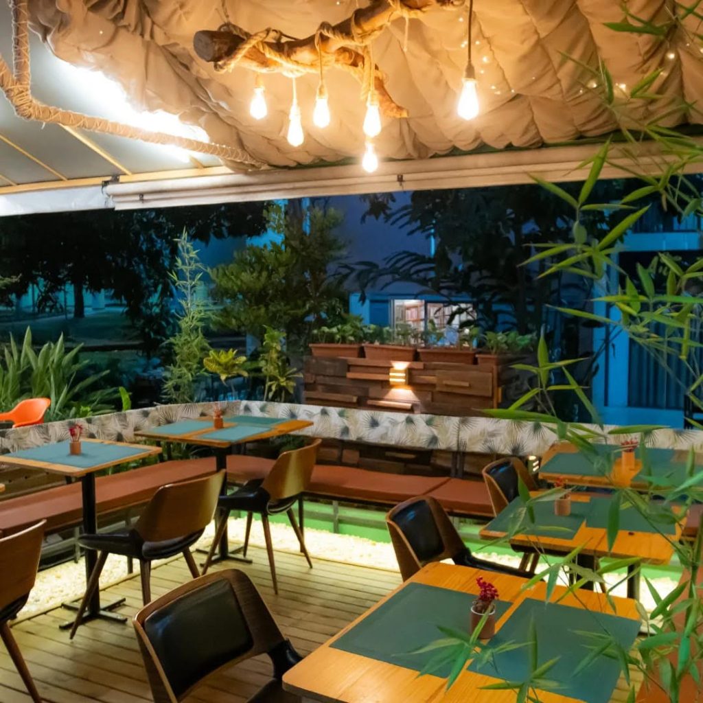 E, para finalizar com doçura, também há duas opções: para os verdadeiros apreciadores de chocolate, o brownie de cacau amazônico acompanhado de sorbet de manga com gengibre; ou bananas flambadas com creme de coco e baunilha de Madagascar e sorbet de manga, um toque de suavidade e sofisticação.