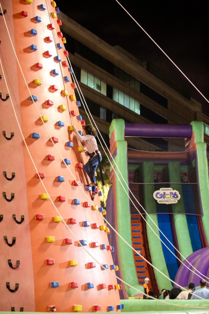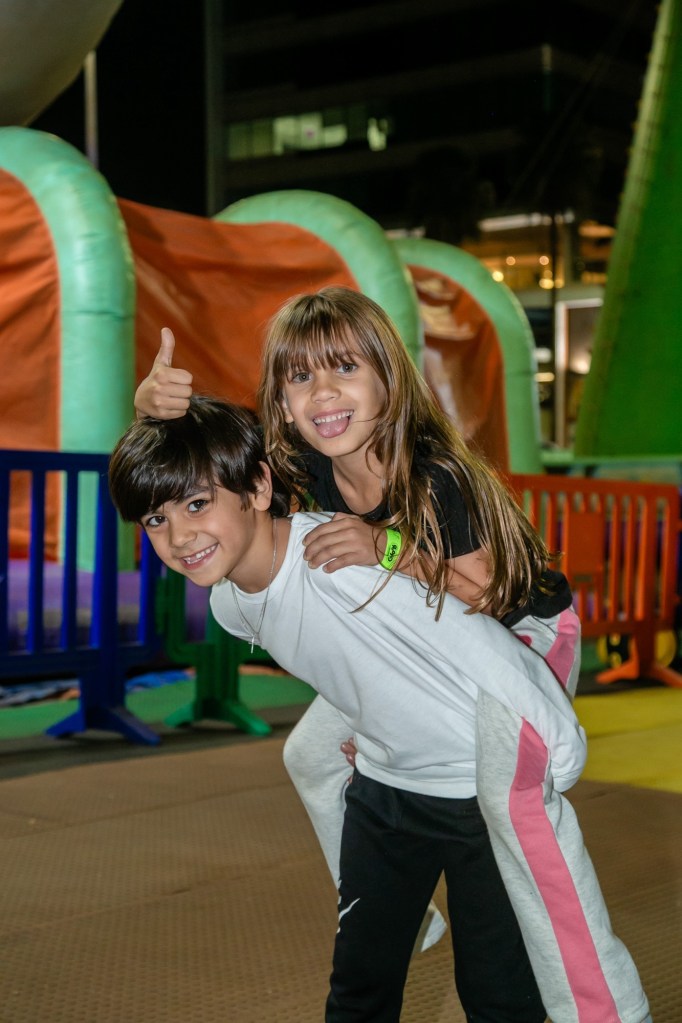 – Crianças menores de 5 anos podem entrar em todos os infláveis com um responsável, exceto a Escalada e o Tobogã.