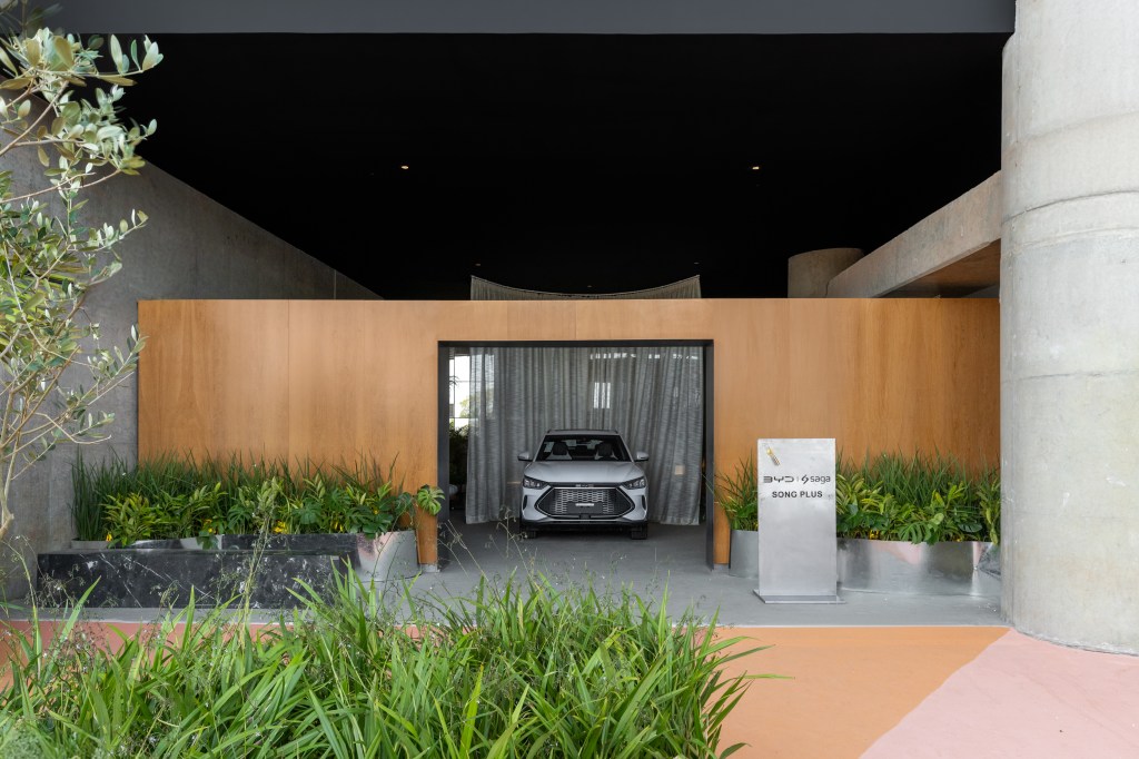 O espaço de 140m² é marcado por elementos em aço que se destacam na estrutura da entrada, nos totens informativos, rodapés e nas jardineiras, além de adornar as poltronas desenhadas por Lina Bo Bardi. Essas peças, cuidadosamente escolhidas, não apenas embelezam o ambiente, mas também demonstram a versatilidade do aço como material que une estética e durabilidade. A presença do veículo elétrico da BYD, que dá nome ao projeto, completa o cenário, reforçando a sinergia entre tecnologia, design e sustentabilidade.