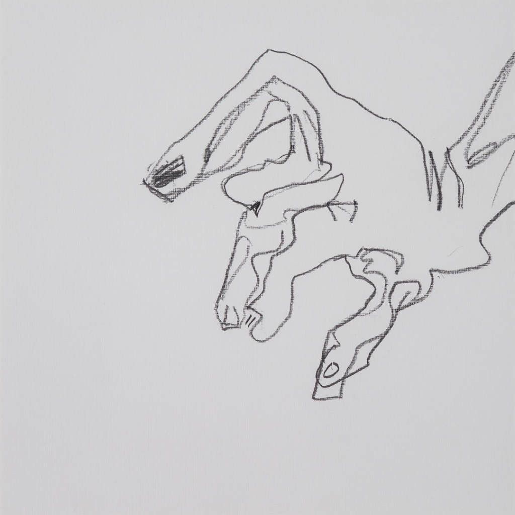 Terezinha Losada traz, com esta exposição, sua perplexidade diante do momento atual: pandemia, guerra, genocídio, a exemplo dos desenhos de mãos em pequeno formato (20x20cm). Segundo a artista, “ao invés de construírem um novo mundo, essas mãos se convulsionam”.